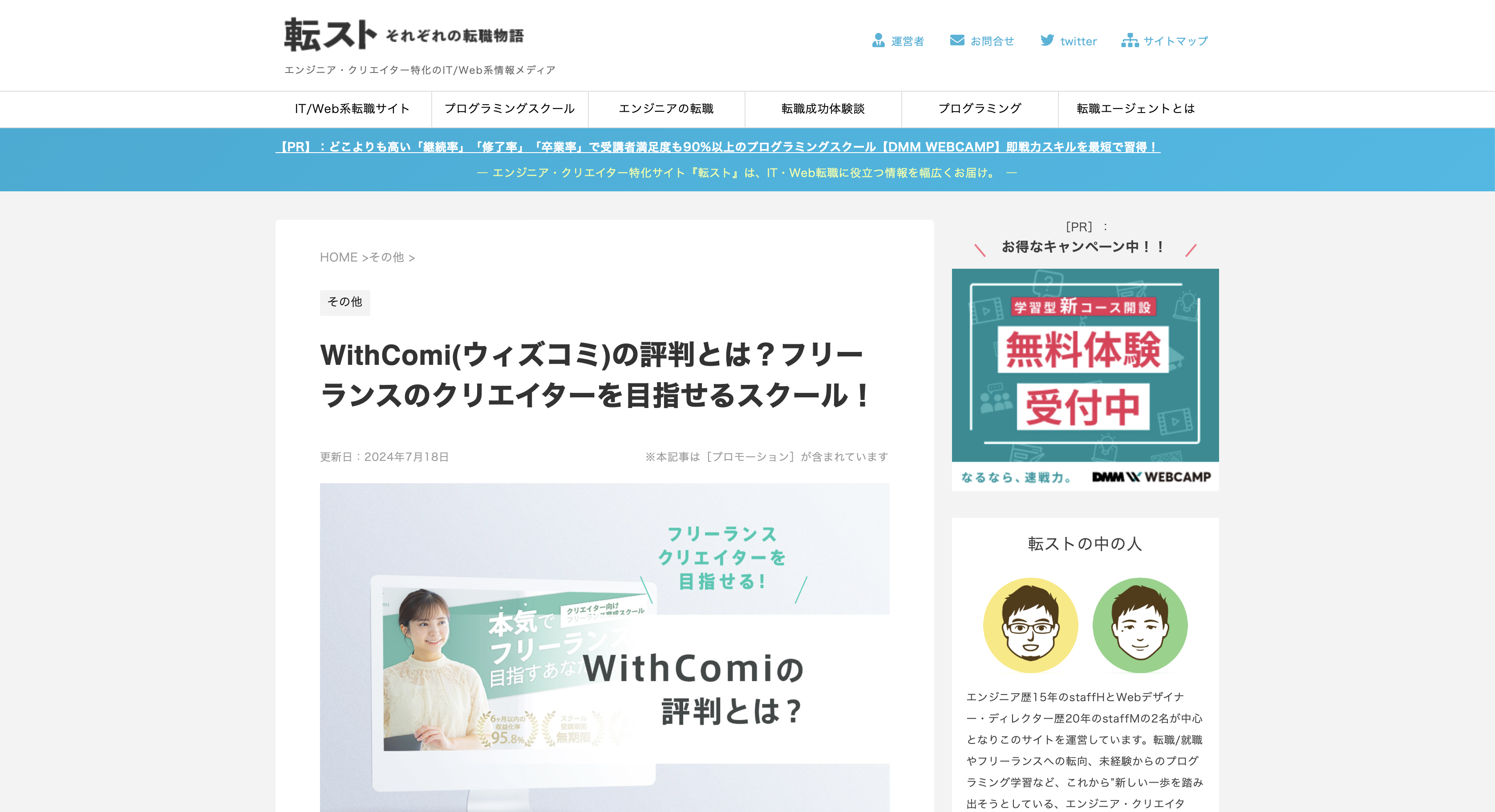 この度、私共が運営するフリーランスクリエイター育成スクール「WithComi(ウィズコミ)」を「転スト それぞれの転職物語」に掲載いただきました。